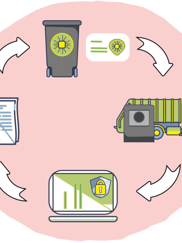 2024–2025 | Distribution de bacs gris pucés et cartes d’accès pour points d’apport volontaire. Ces puces permettent de mesurer et enregistrer les levées de bacs et les dépôts dans les points d’apport volontaire. |